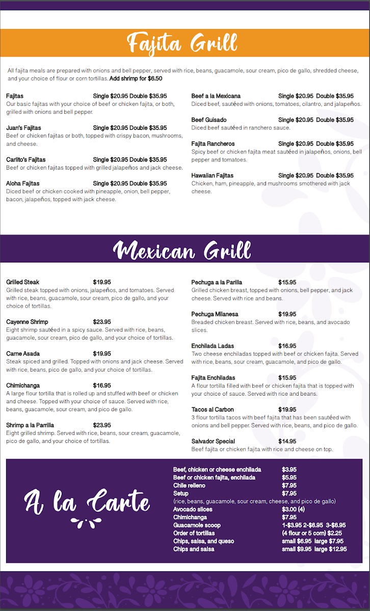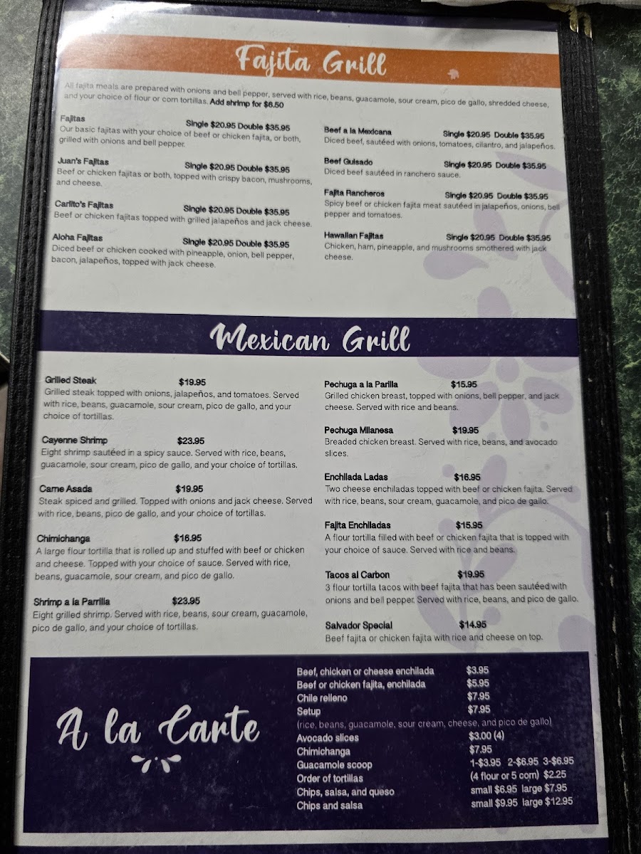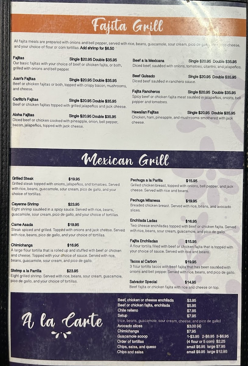 These dishes suit a variety of moments—from sharing a plate of fajitas for two over conversation to grabbing a quick snack or enjoying a family meal. The mix of traditional plates, from chimichangas to avocado chicken, complements the friendly and cozy surroundings, making every visit feel like a simple, well-enjoyed occasion.