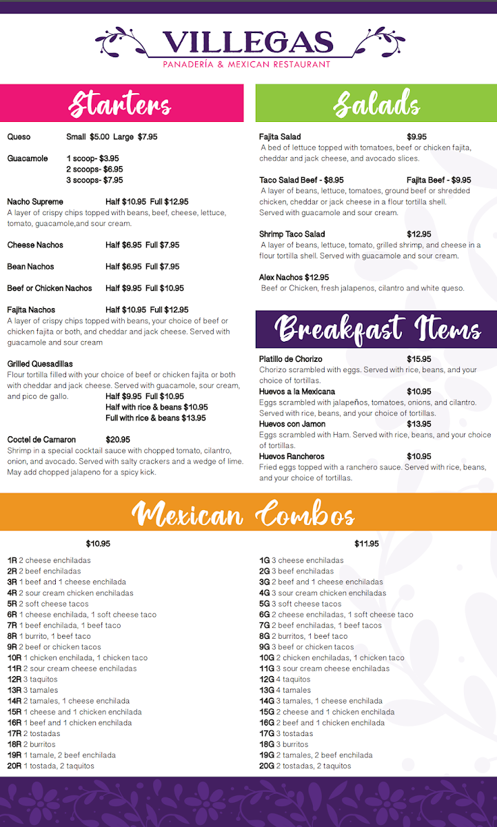 Panaderia Villegas offers a straightforward and inviting menu inspired by traditional Mexican flavors, perfect for those seeking a casual dining experience that feels both familiar and satisfying. Whether you're stopping by for a quick lunch or settling in for a relaxed dinner, the menu balances comforting classics with hearty portions that bring warmth to the table.